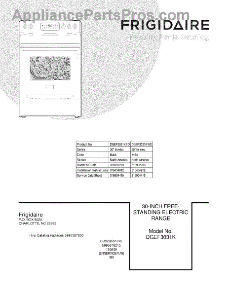 Parts for Frigidaire DGEF3031KBD: 01 - Cover Parts