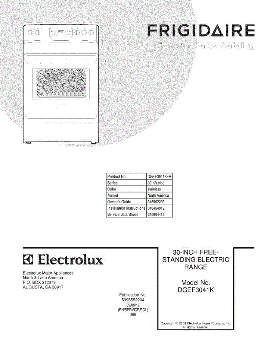Parts for Frigidaire DGEF3041KFA: 01 - Cover Parts