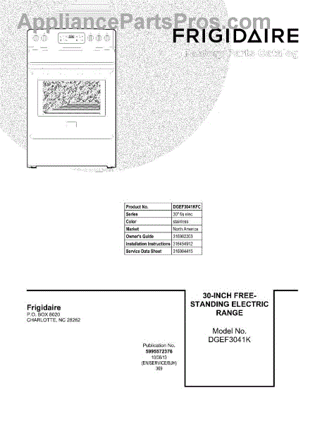 Parts for Frigidaire DGEF3041KFC: 01 - Cover Parts