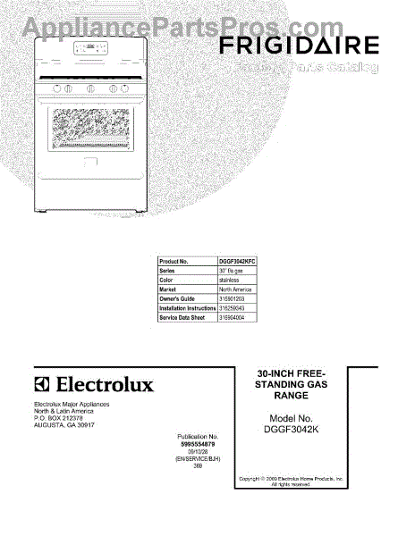 Parts for Frigidaire DGGF3042KFC: 01 - Cover Parts