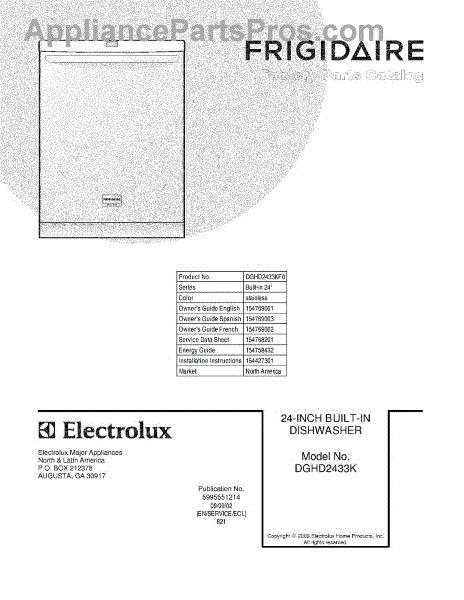 Parts for Frigidaire DGHD2433KF0: 01 - Cover Parts