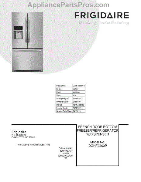 Parts for Frigidaire DGHF2360PF0: 01 - Cover Parts