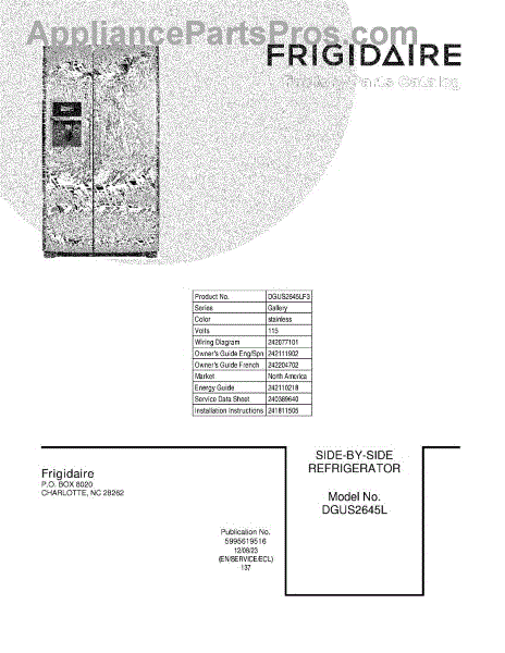 Parts for Frigidaire DGUS2645LF3: 01 - Cover Parts