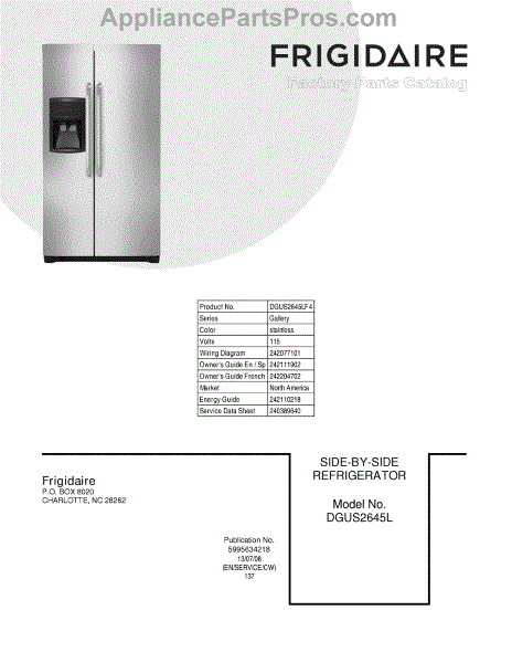 Parts for Frigidaire DGUS2645LF4: 01 - Cover Parts