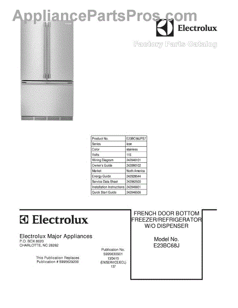 Parts for Frigidaire E23BC68JPS7: 01 - Cover Parts