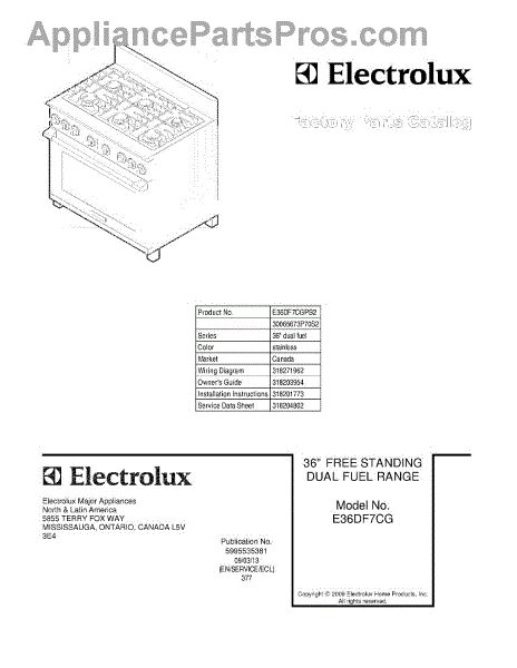 Parts for Frigidaire E36DF7CGPS2: 01 - Cover Parts
