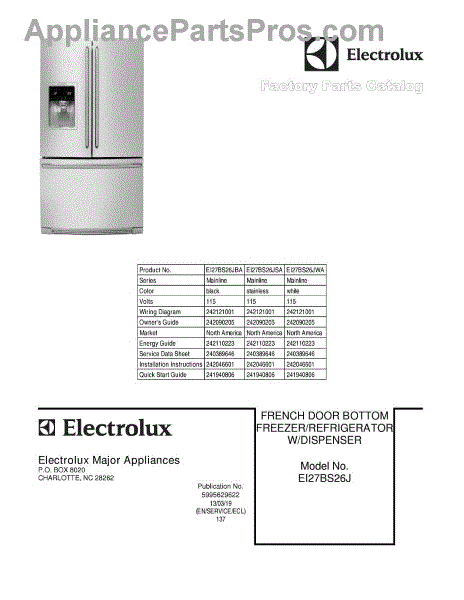 Parts for Frigidaire EI27BS26JWA: 01 - Cover Parts