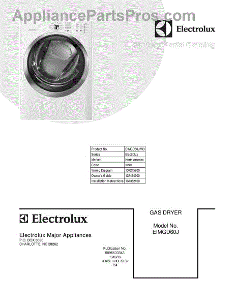 Parts for Frigidaire EIMGD60JIW3: 01 - Cover Parts