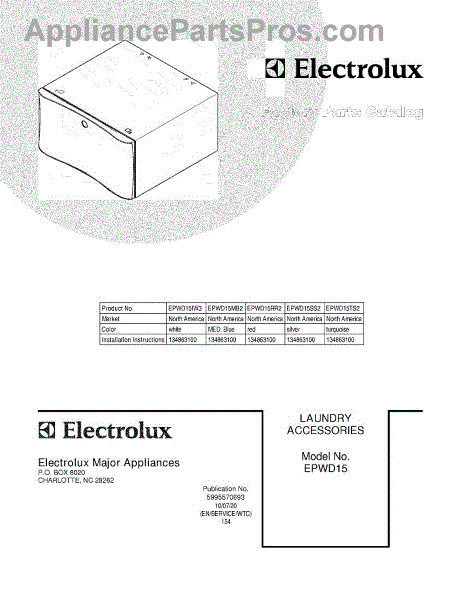 Parts for Frigidaire EPWD15MB2: 01 - Cover Parts