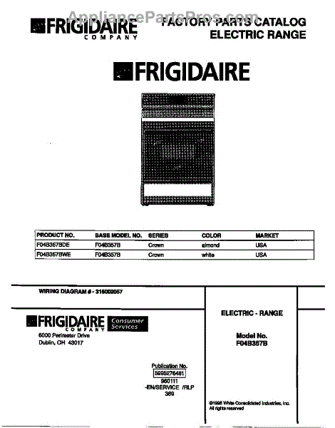 Parts for Frigidaire F04B357BWE: 01 - Cover Parts