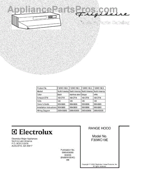 Parts for Frigidaire F30WC19EQ: 01 - Cover Parts