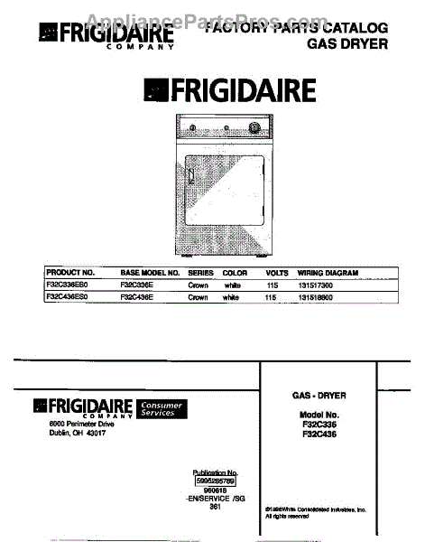 Parts for Frigidaire F32C336ES0: 01 - Cover Parts