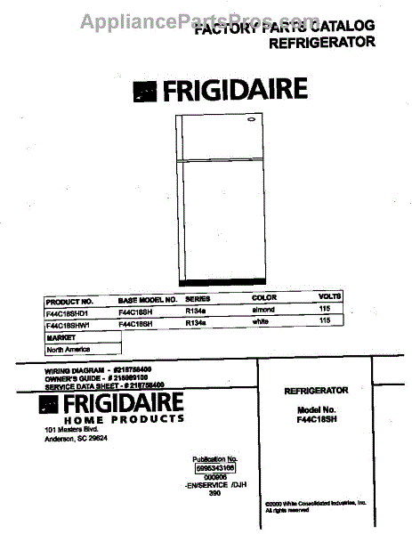 Parts for Frigidaire F44C18SHW1: 01 - Cover Parts