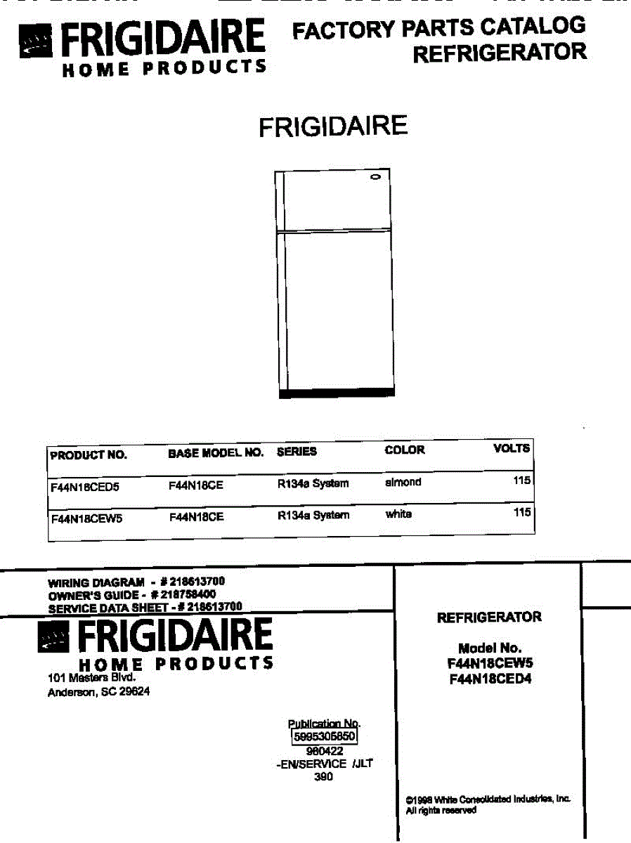 Parts for Frigidaire F44N18CEW5: 01 - Cover Parts