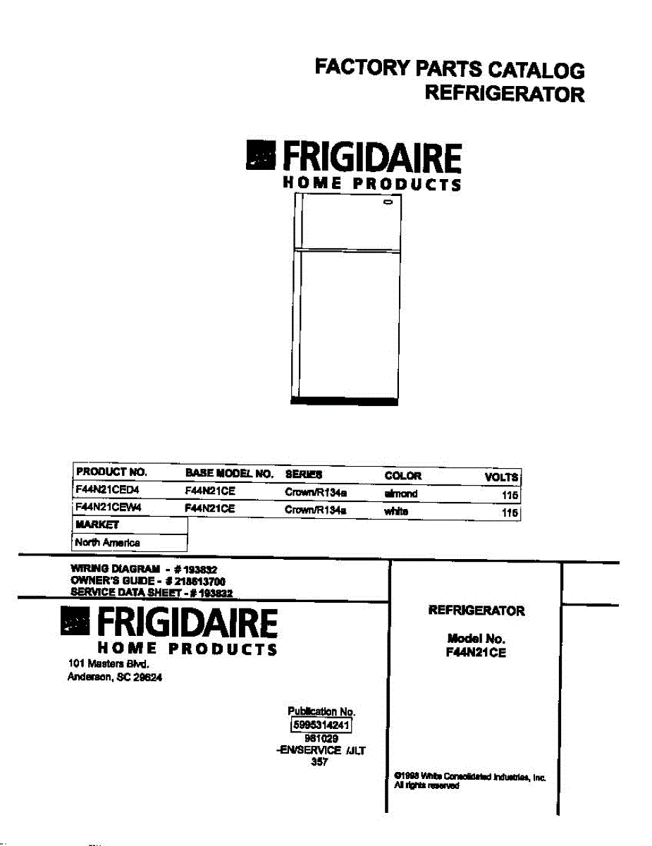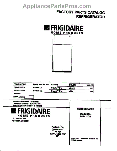 Parts for Frigidaire F44N21CED4: 01 - Cover Parts