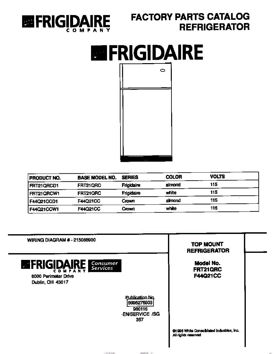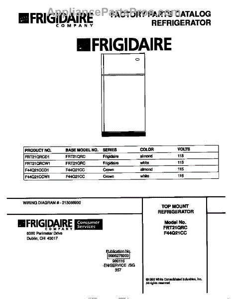 Parts for Frigidaire F44Q21CCW1: 01 - Cover Parts