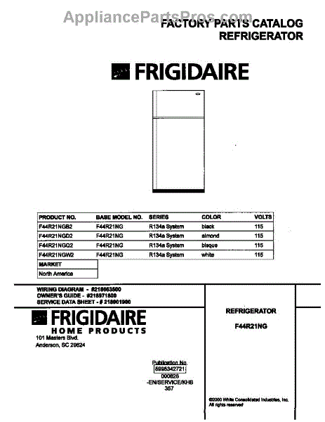 Parts for Frigidaire F44R21NGD2: 01 - Cover Parts