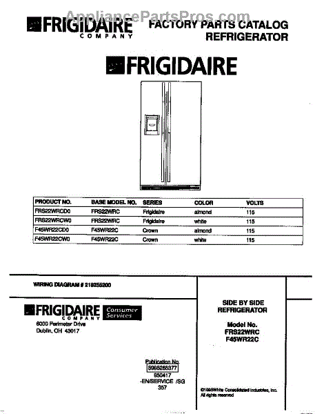 Parts for Frigidaire F45WR22CD0: 01 - Cover Parts