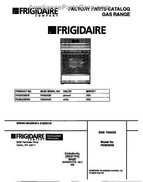 Parts for Frigidaire F64B353BWB: 01 - Cover Parts