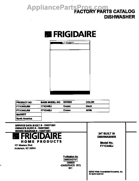 Parts for Frigidaire F71C44EJB0: 01 - Cover Parts