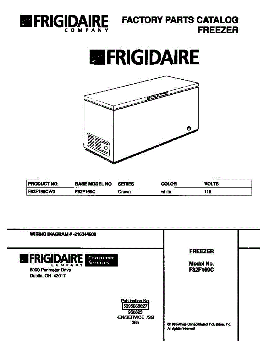 Parts for Frigidaire F82F169CW0: 01 - Cover Parts