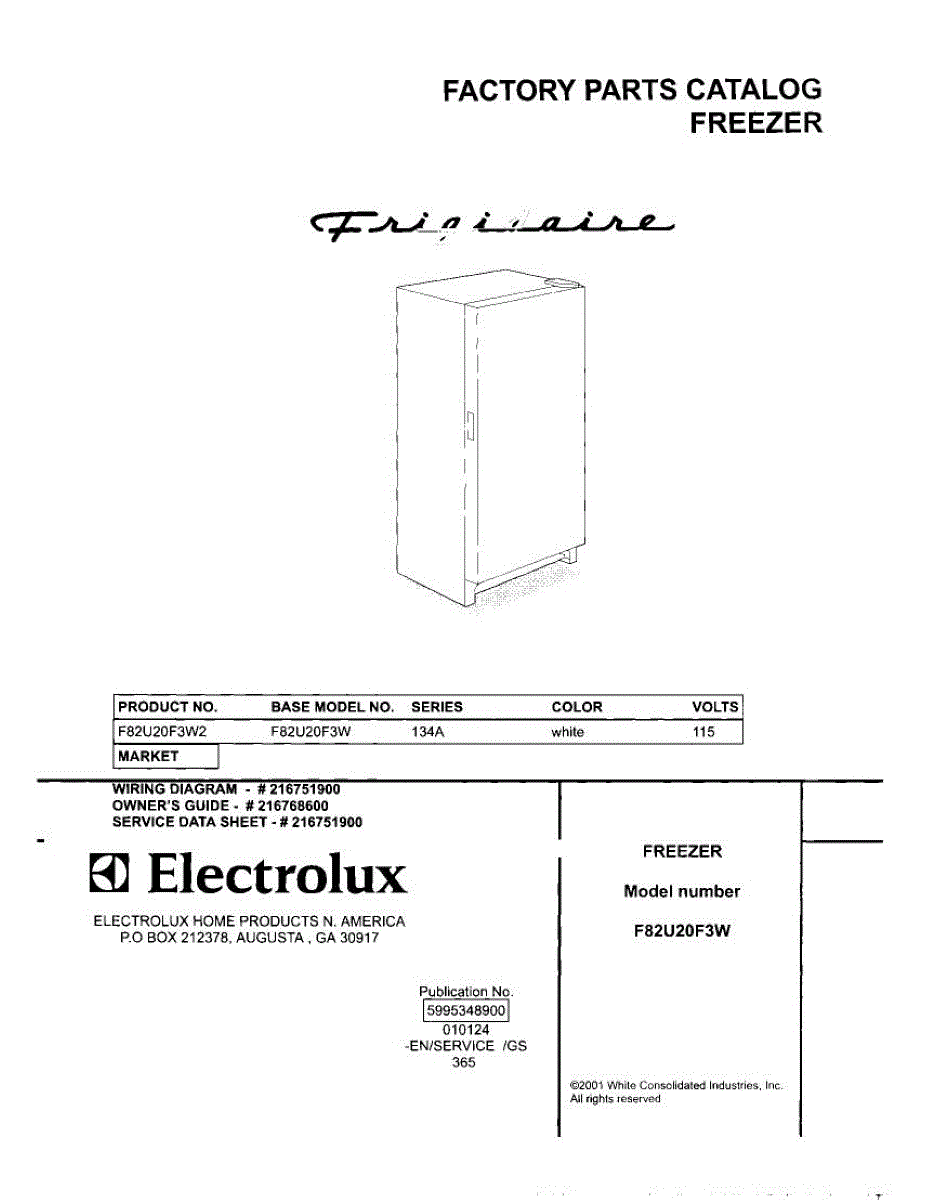 Parts for Frigidaire F82U20F3W2: 01 - Cover Parts