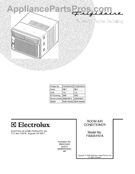 Parts for Frigidaire FAA051N7A2: 01 - Cover Parts