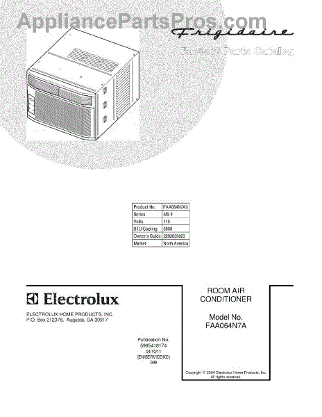 Parts for Frigidaire FAA064N7A3: 01 - Cover Parts