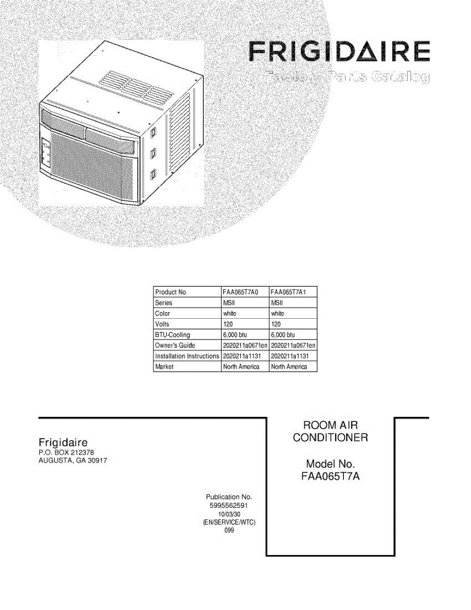 Parts for Frigidaire FAA065T7A1: 01 - Cover Parts