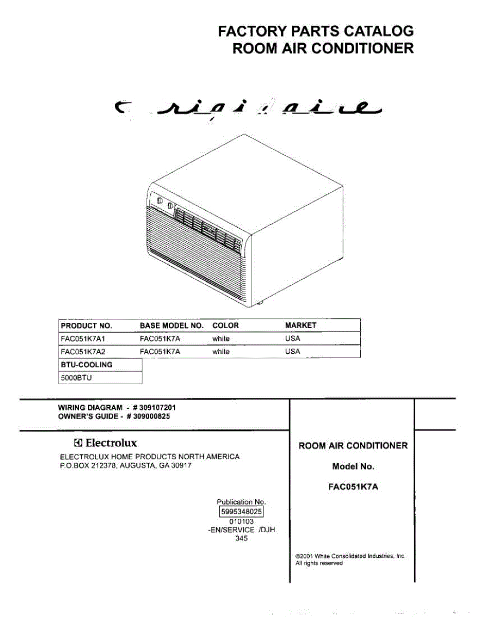 Parts for Frigidaire FAC051K7A2: 01 - Cover Parts