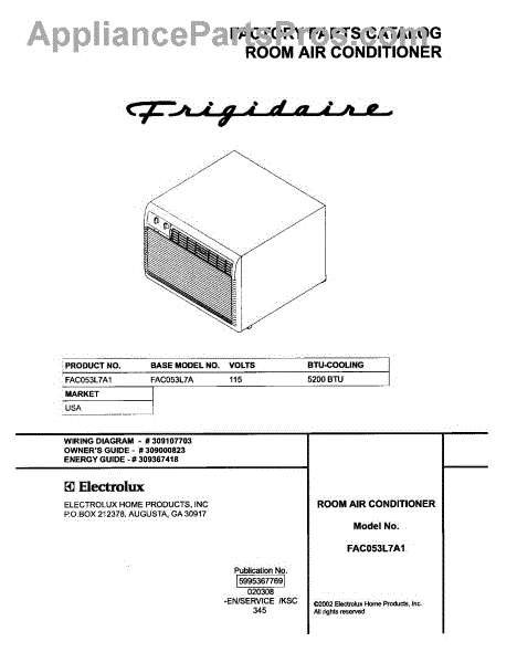 Parts for Frigidaire FAC053L7A1: 01 - Cover Parts