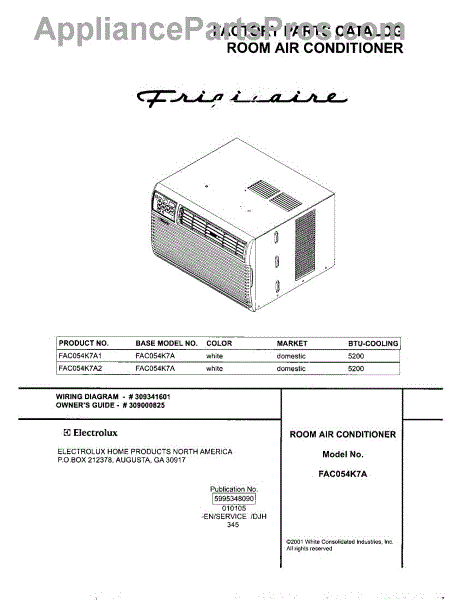 Parts for Frigidaire FAC054K7A1: 01 - Cover Parts