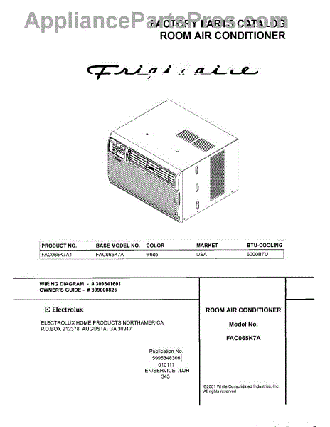 Parts for Frigidaire FAC065K7A1: 01 - Cover Parts