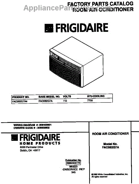 Parts for Frigidaire FAC082G7A4: 01 - Cover Parts