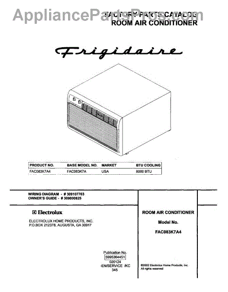 Parts for Frigidaire FAC083K7A4: 01 - Cover Parts