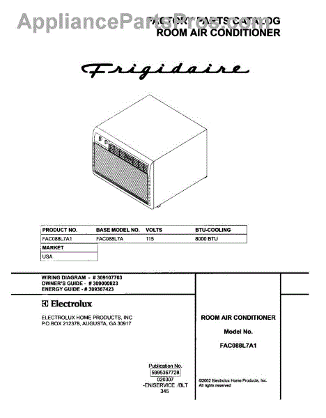 Parts for Frigidaire FAC088L7A1: 01 - Cover Parts