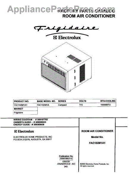 Parts for Frigidaire FAC102M1A1: 01 - Cover Parts