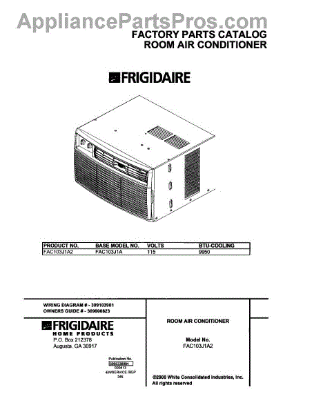 Parts for Frigidaire FAC103J1A2: 01 - Cover Parts