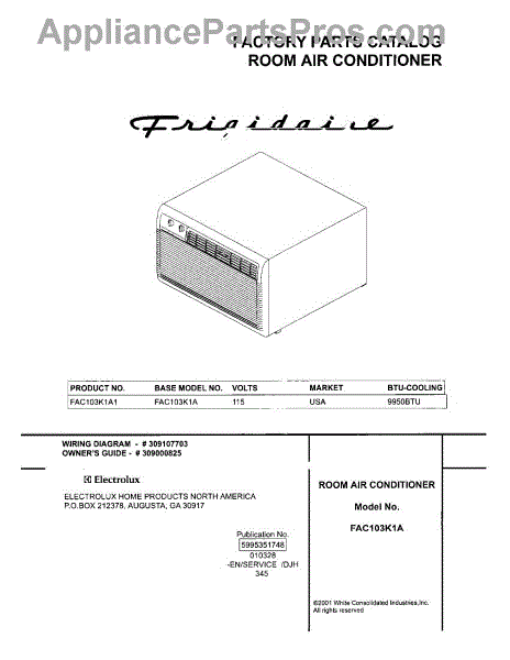 Parts for Frigidaire FAC103K1A1: 01 - Cover Parts