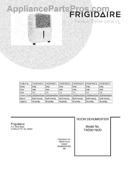 Frigidaire Dehumidifier Parts