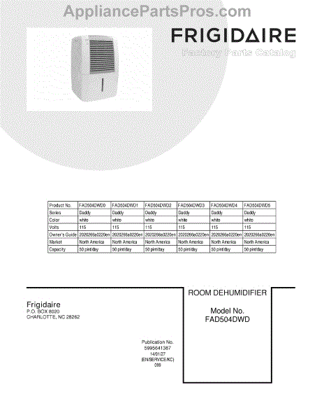 Frigidaire Dehumidifier Parts