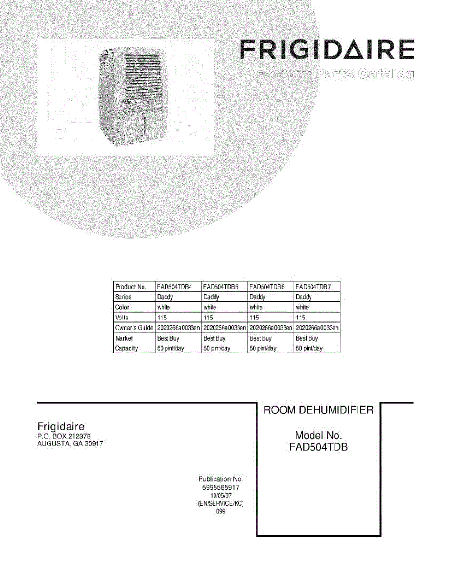 Parts for Frigidaire FAD504TDB6: 01 - Cover Parts