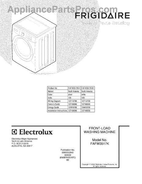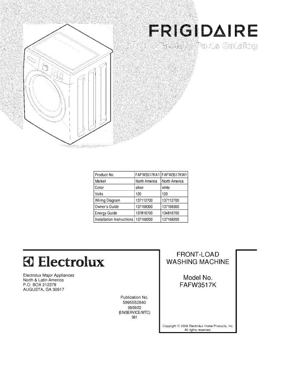 Parts for Frigidaire FAFW3517KA1: 01 - Cover Parts