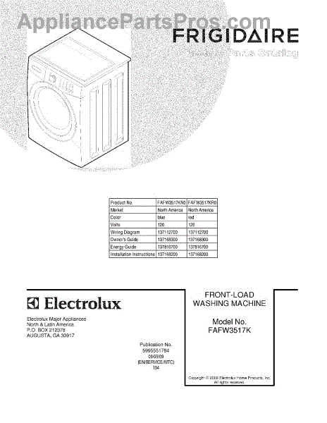 Parts for Frigidaire FAFW3517KR0: 01 - Cover Parts