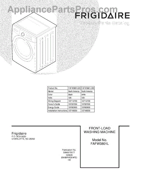 Parts for Frigidaire FAFW3801LW0: 01 - Cover Parts