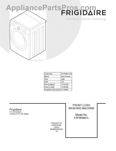 Parts for Frigidaire FAFW3801LW4: 01 - Cover Parts