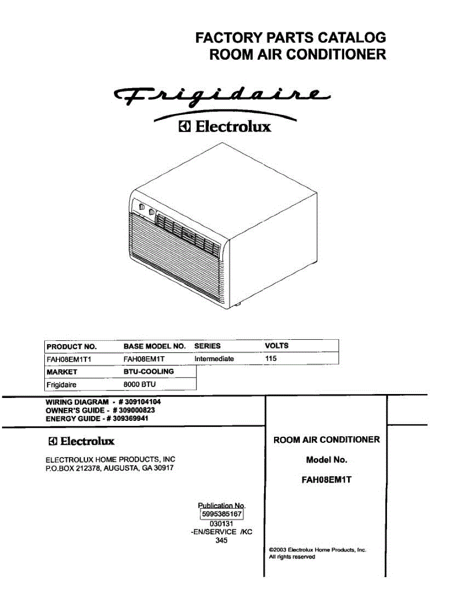 Parts for Frigidaire FAH08EM1T1: 01 - Cover Parts