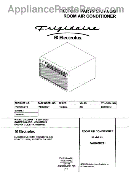 Parts for Frigidaire FAH106M2T1: 01 - Cover Parts