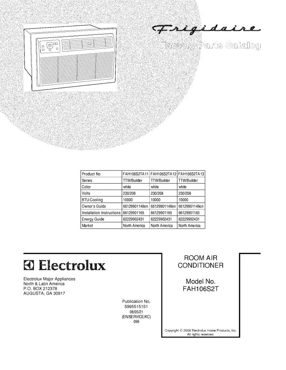 Parts for Frigidaire FAH106S2TA12: 01 - Cover Parts