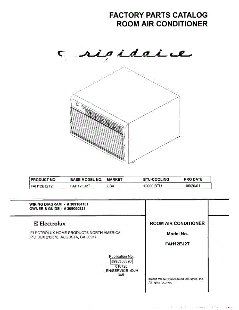 Parts for Frigidaire FAH12EJ2T2: 01 - Cover Parts